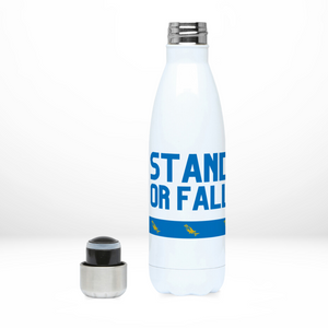 The perfect gift for any Sussex fan, this stainless steel water bottle features a unique design with the text 'Stand or fall' and 'Sussex by the sea' underlined by the famous six Sussex martlets.