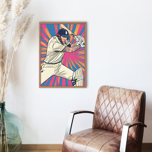 Add some colour to your wall with this unique, stylish, pop art poster featuring an illustration of England Captain Ben Stokes in action. Available in A4 and A3, this will look great on the wall of a cricket-lovers bedroom, office, lounge, or kitchen!
