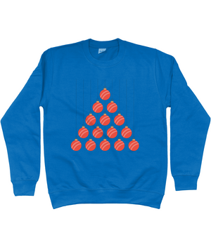 Get cozy this Christmas with our cricket ball bauble Christmas tree sweatshirt, available for kids in sizes 3-13.