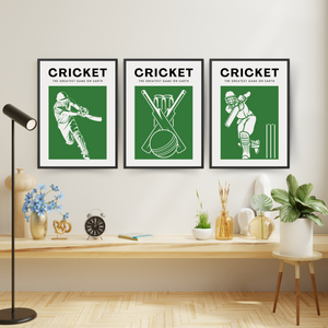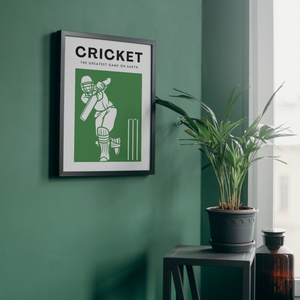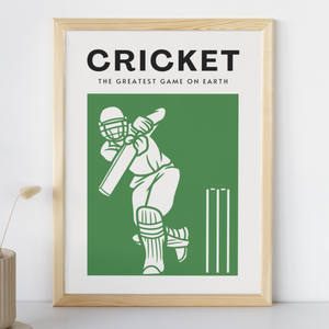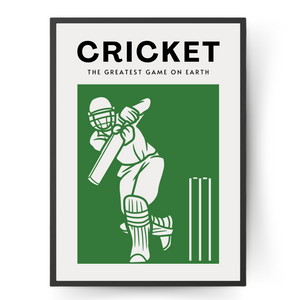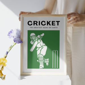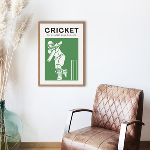 Contemporary wall art, 'Cricket: The greatest game on earth'. Showcase your love for the game with this unique print, perfect for a bedroom, home office or living room.