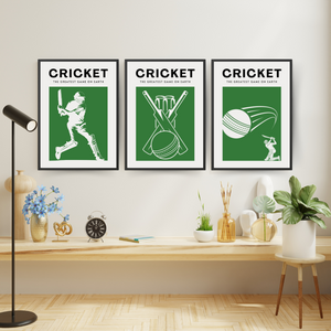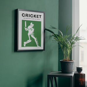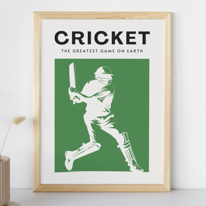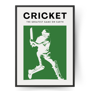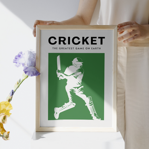 Contemporary wall art, 'Cricket: The greatest game on earth'. Showcase your love for the game with this unique print, perfect for a bedroom, home office or living room.