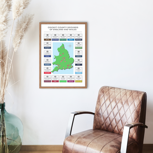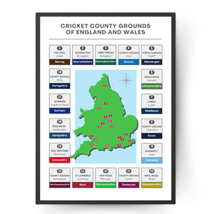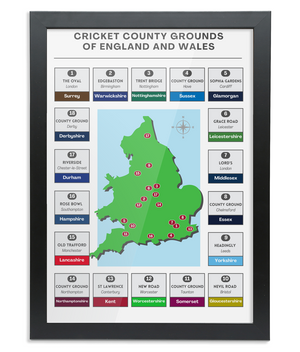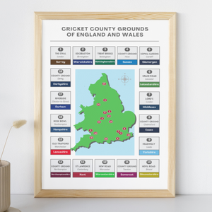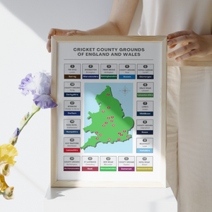 A map of every cricket county ground in the country, this wall print is the perfect gift for any cricket fan.