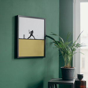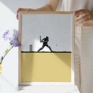 Bring the spirit of cricket into any space with this bold and minimalist cricket wall art. Featuring a striking black silhouette of a batsman in action against a clean, modern backdrop, this print captures the energy and elegance of the game. Perfect for cricket fans, sports-themed rooms, or as a unique gift, this artwork adds a sporty edge to your decor.