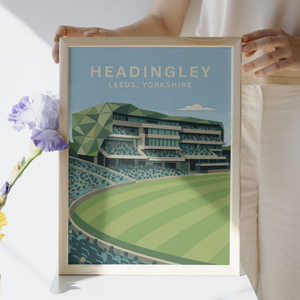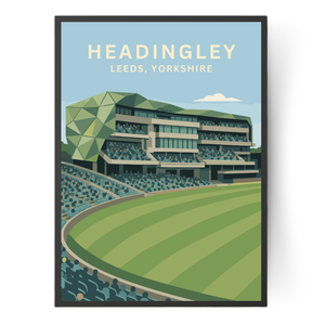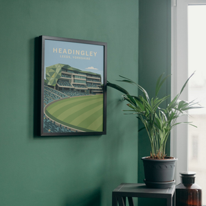 Bring the heart of Yorkshire cricket into your home with this beautifully illustrated Headingley cricket poster. Featuring the modern architecture and lively atmosphere of the famous Leeds ground, this print is perfect for cricket fans and lovers of Yorkshire sport.