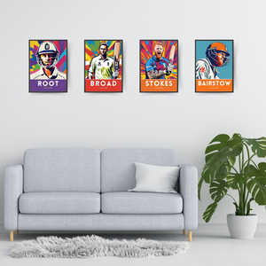 Add some colour to your wall with this unique, stylish, pop art poster featuring an illustration of England legend Jonny Bairstow and his name in modern print. Available in A4 and A3, this will look great on the wall of a cricket-lovers bedroom, office, lounge, or kitchen!