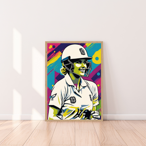 Add some colour to your wall with this unique, stylish, pop art poster featuring an illustration of Lauren Bell. Available in A4 and A3, this will look great on the wall of a cricket-lovers bedroom, office, lounge, or kitchen!