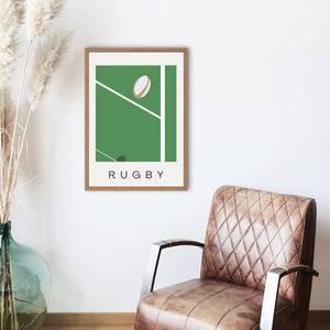 Contemporary wall art showing a rugby ball flying through goal posts. Perfect for a bedroom, office or lounge. Showcase your love for sport with our stylish shadow design collection.