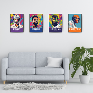 Add some colour to your wall with this unique, stylish, pop art poster featuring an illustration of Virat Kohli with his name in modern print. Available in A4 and A3, this will look great on the wall of a cricket-lovers bedroom, office, lounge, or kitchen!