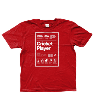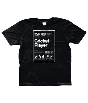 Unique novelty cricket player label t-shirt. Made from 100% cotton, your t-shirt has a comfortable 180gsm weight and comfortable fit.