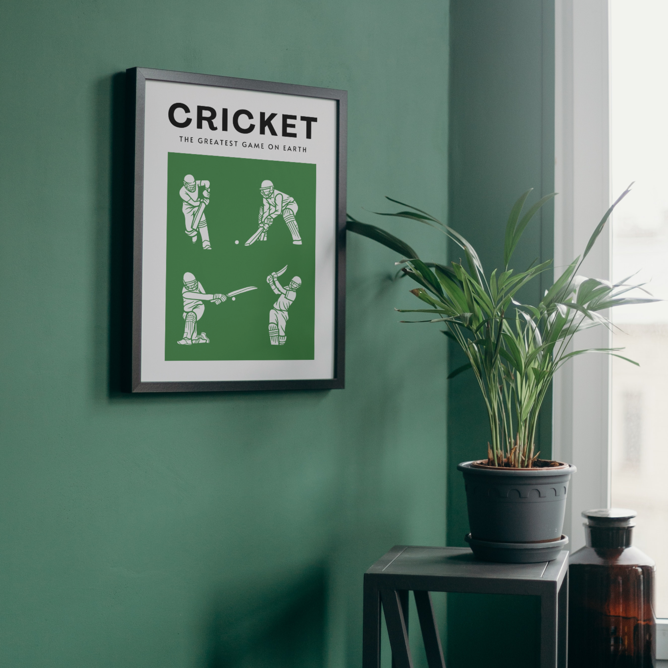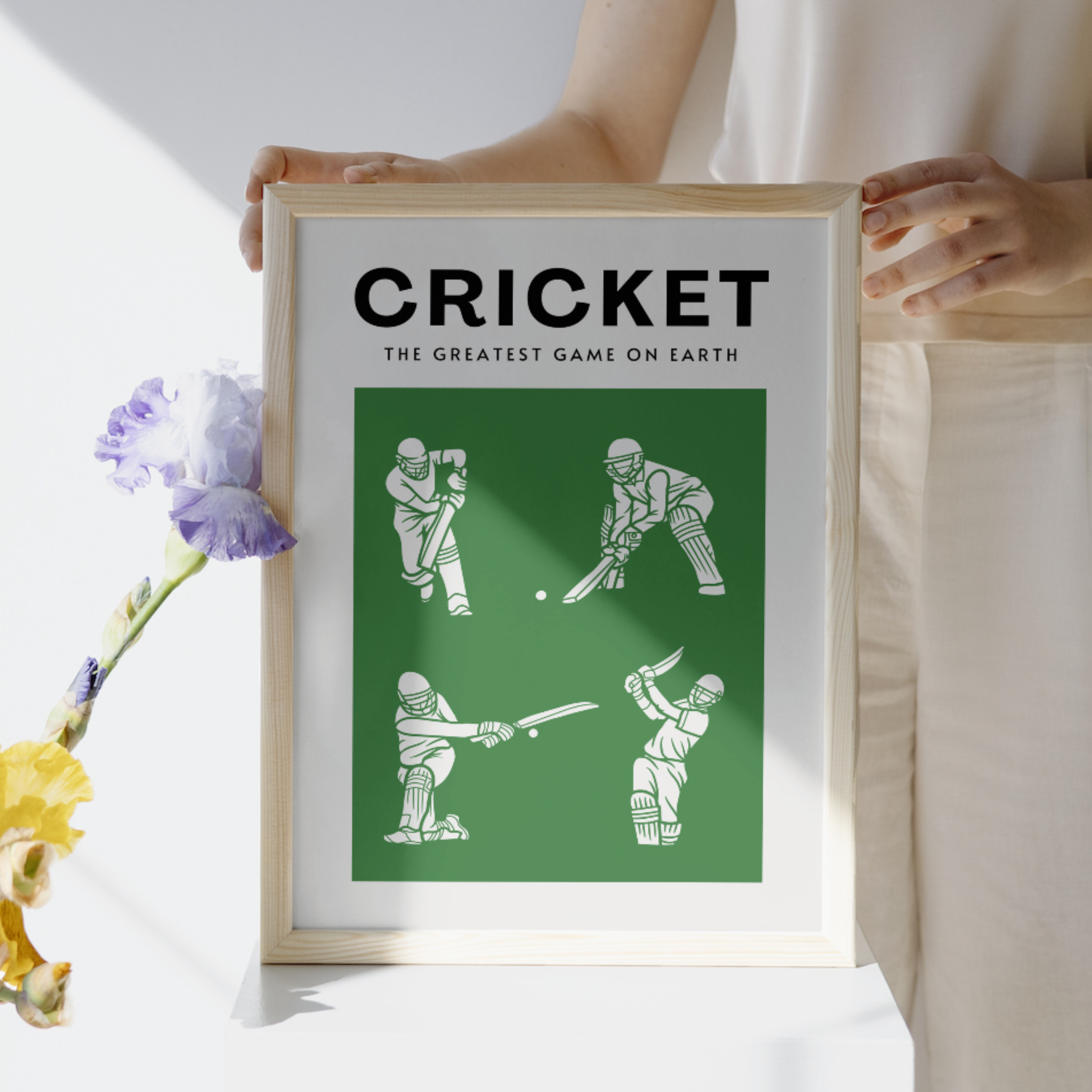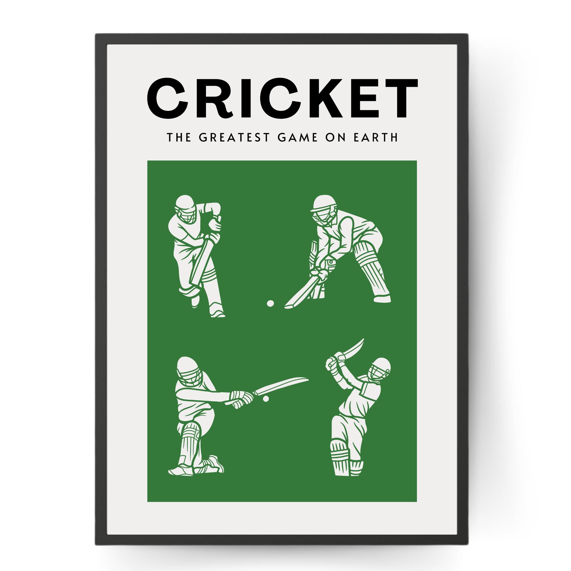 Contemporary wall art, 'Cricket: The greatest game on earth'. Showcase your love for the game with this unique print, perfect for a bedroom, home office or living room.