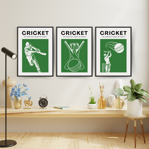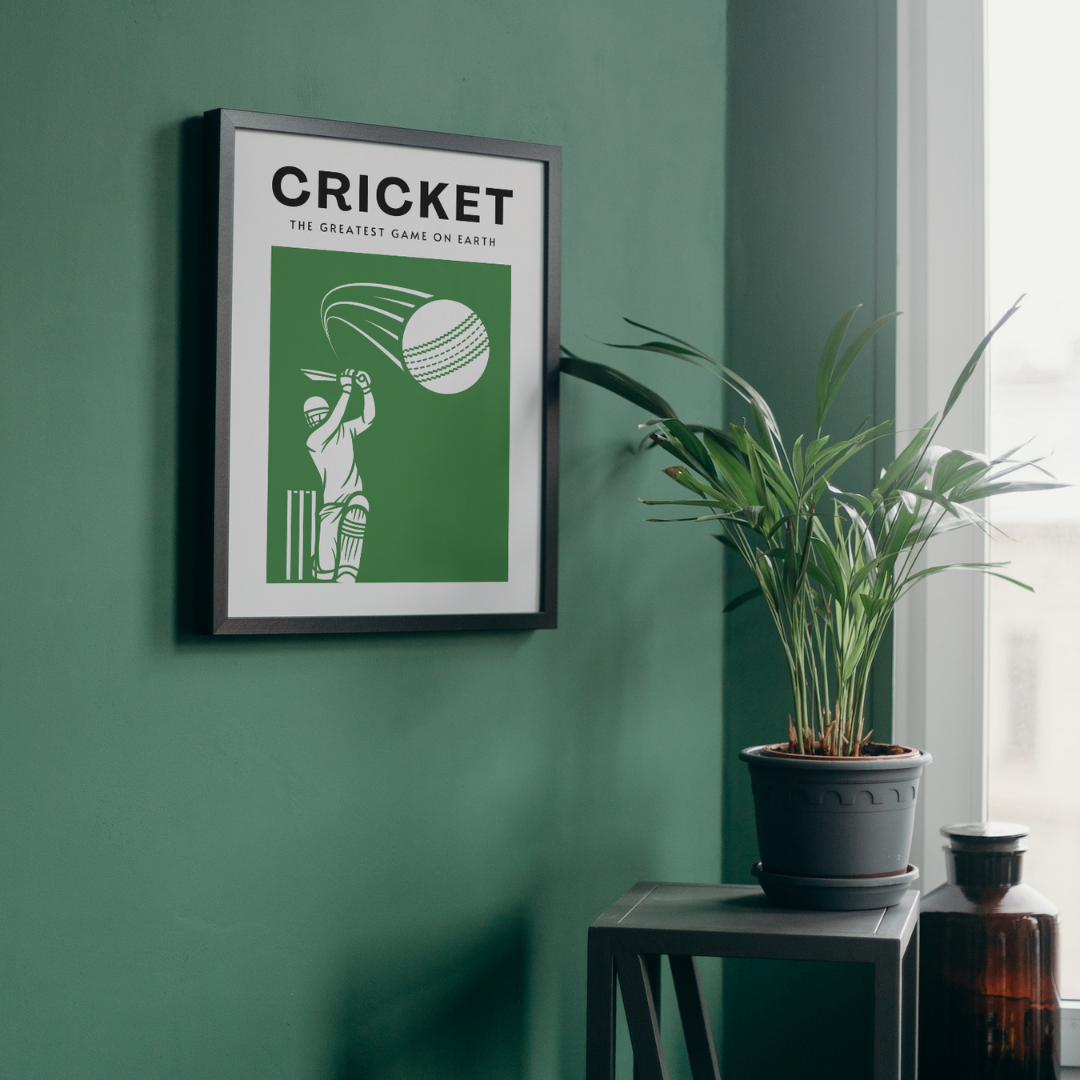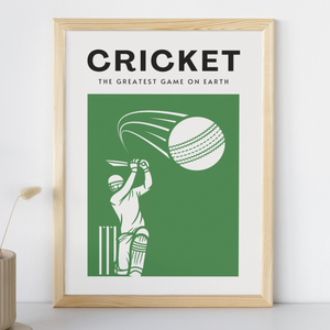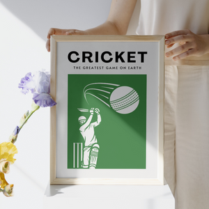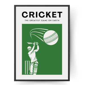 Contemporary wall art, 'Cricket: The greatest game on earth'. Showcase your love for the game with this unique print, perfect for a bedroom, home office or living room.