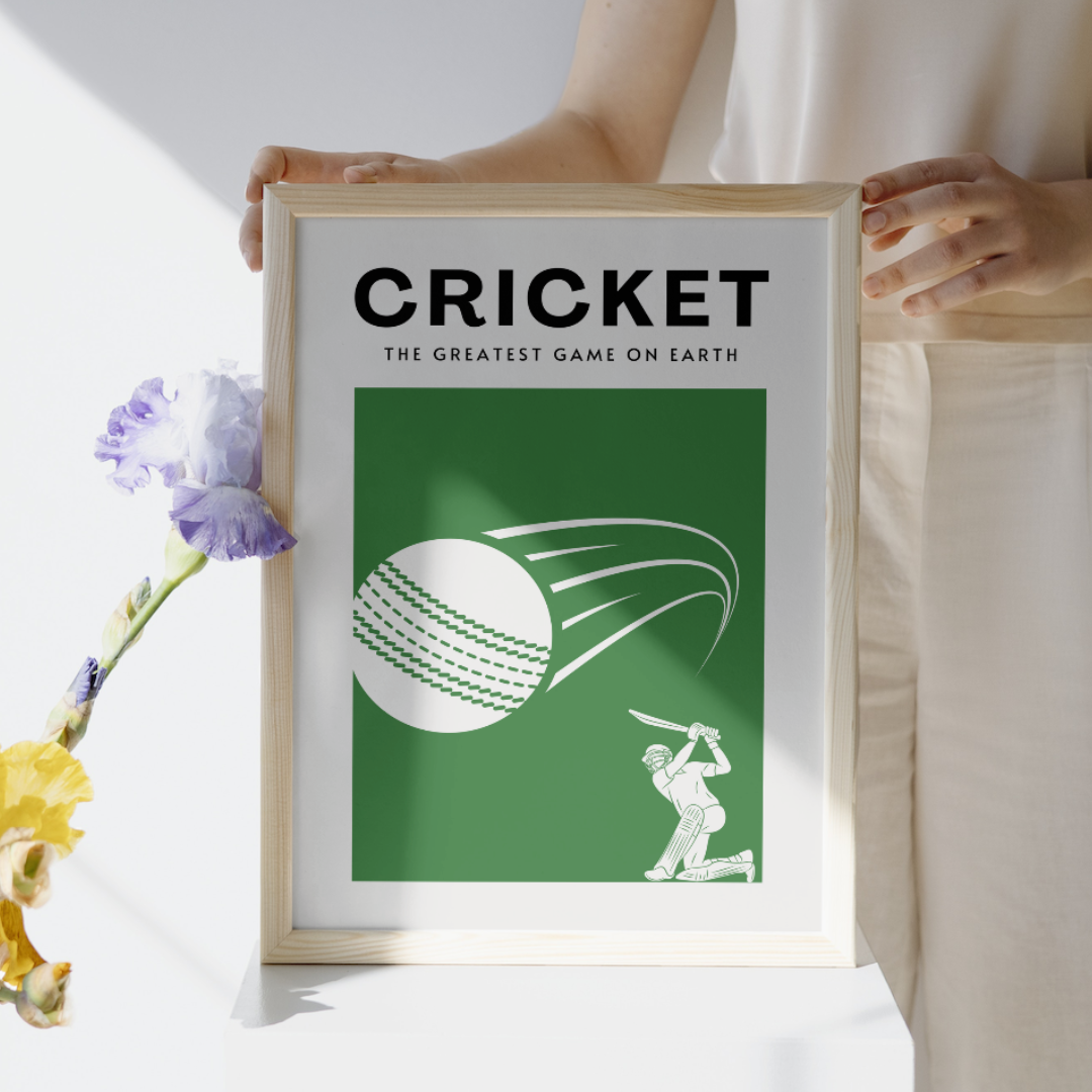 Contemporary wall art, 'Cricket: The greatest game on earth'. Showcase your love for the game with this unique print, perfect for a bedroom, home office or living room.