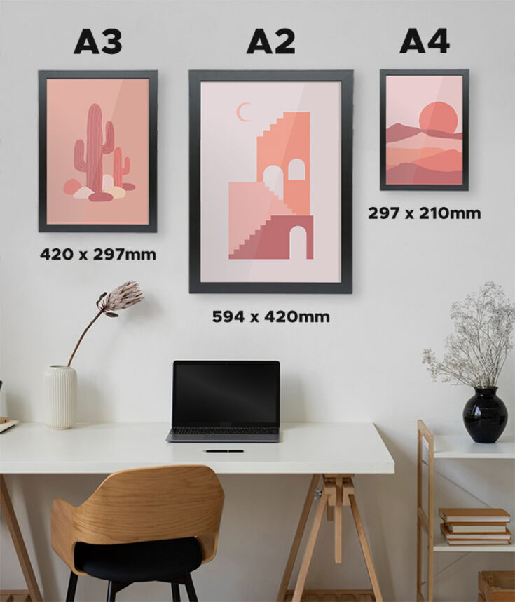 Manufactured from high-quality wood, this 25mm smooth matt black frame includes 2mm glass and an MDF backing board. It's sized perfectly for print and comes with hanging fixings, making it ready to hang.